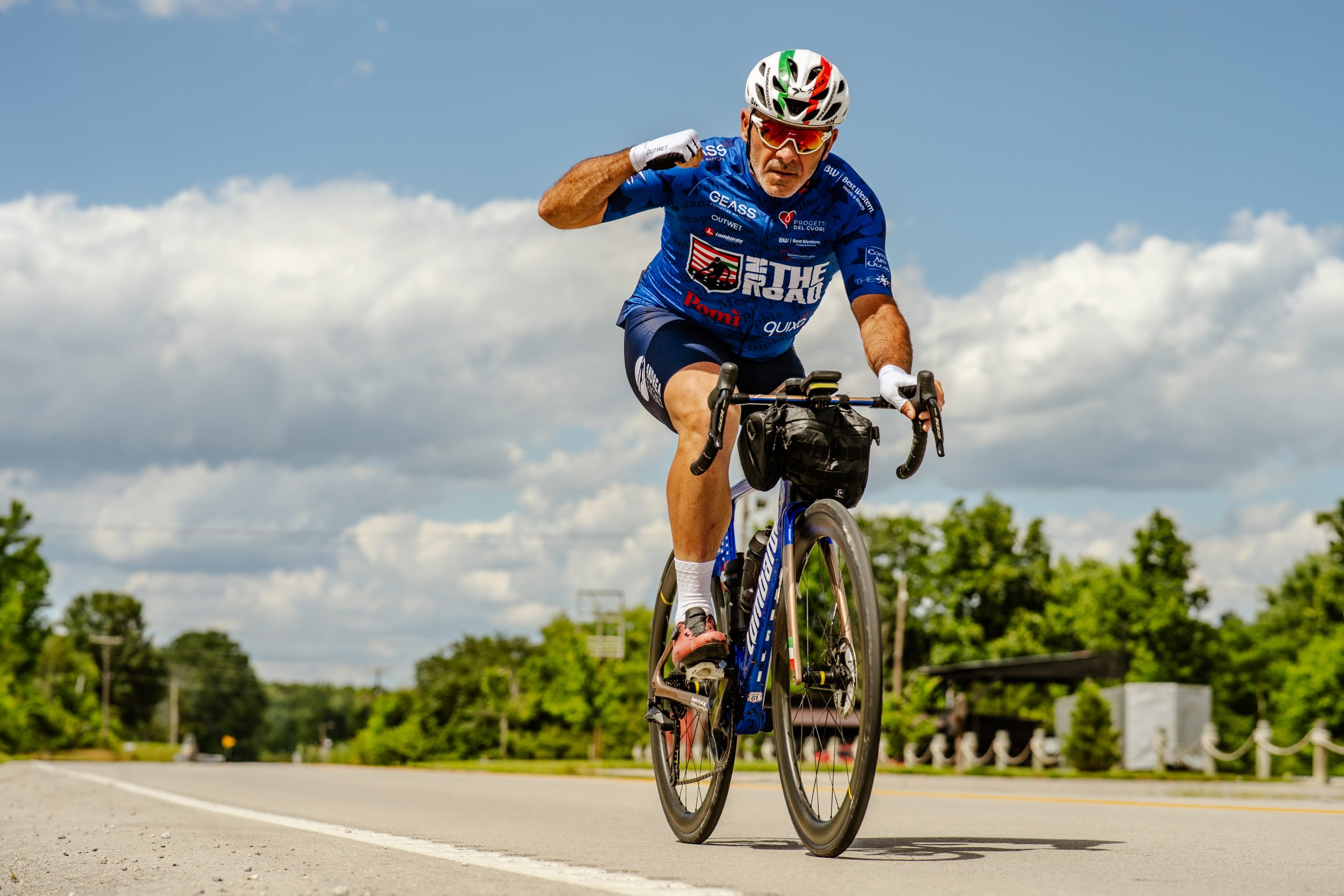 Nella tappa di ieri, che ci ha portati a Louisville, ad esempio, a causa di un mio errore di valutazione, sono rimasto senza acqua, per cui ho dovuto avvisare Nicholas e Federico, trovandoci poi lungo la strada per un rifornimento “on the road”.